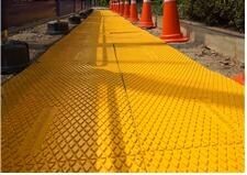 도심지 공사현장에 설치되는 임시통행로는 바닥이 고르지 않은 경우가 많아 시민들이 통행에 불편을 겪는 경우가 많다.