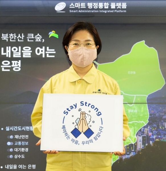 [무한뉴스]김미경 은평구청장은 지난 12일 이동진 도봉구청장의 지명을 받아 코로나19 극복 ‘스테이 스트롱’ 캠페인에 동참했다.