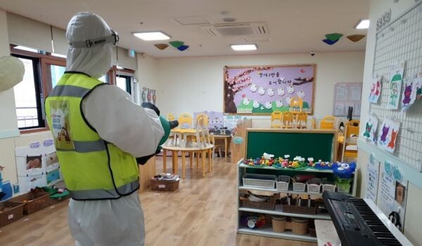 이번 방역도 전문 업체가 안정성이 높은 것으로 알려진 쿼트플러스알파액 등 살균소독제를 어린이집 공간 곳곳에 살포해 바이러스를 제거하는 방식으로 진행된다.