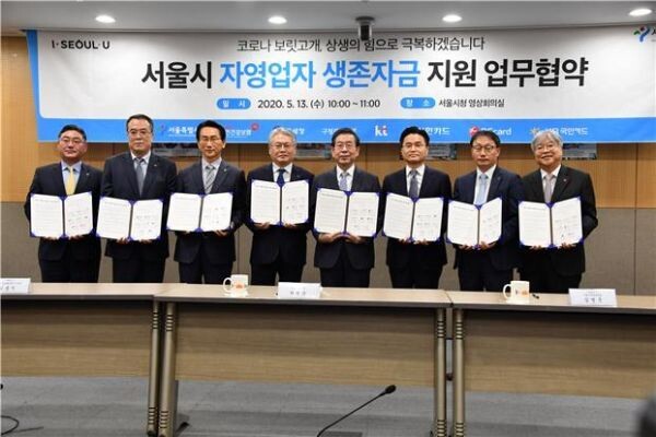 서울시는 13일 자영업자들이 간편하게 신청할 수 있도록 ㈜케이티 뿐만 아니라 국민건강보험공단, 서울지방국세청, 구청장협의회, 신한·BC·KB국민카드와 업무협약을 맺은 바 있다.