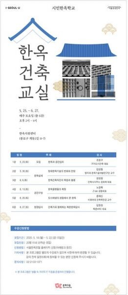 강맹훈 서울시 도시재생실장은 “한옥에 관심 있는 시민들이 전통과 현대를 아우르는 한옥의 무한한 가능성과 가치에 공감하는 시간이 되길 바란다”며 “강의 참여자분들은 코로나19 확산방지 및 예방을 위한‘생활 속 거리두기’이용수칙을 반드시 준수해주시길 당부드린다”고 말했다.