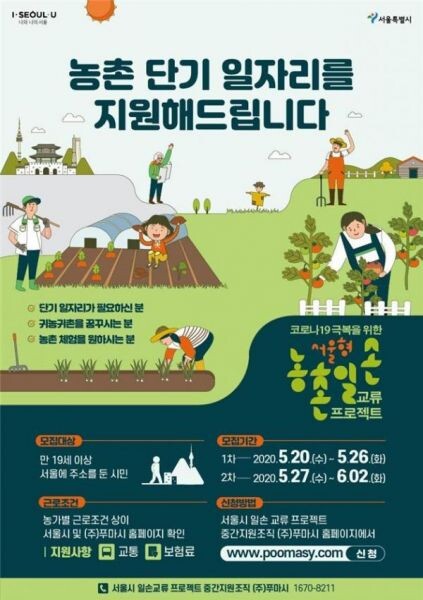 나아가 시는 감염병이 언제든 다시 올 수 있는 만큼, 지역과 긴밀히 협력해 외국인 노동자에 의존하는 농가일손구조를 자급자족적인 농촌 일자리 생태계로 만들어나간다는 목표다 서울시는 5월 중 3개 지자체에서 1단계 프로젝트를 시작한다.