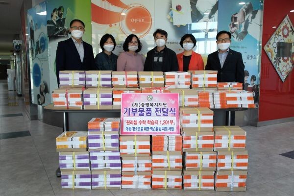 학습지는 기초자치단체복지재단협의회 회원 기관인 당진시복지재단과 연계해 천종현 수학연구소에서 기증받았다.