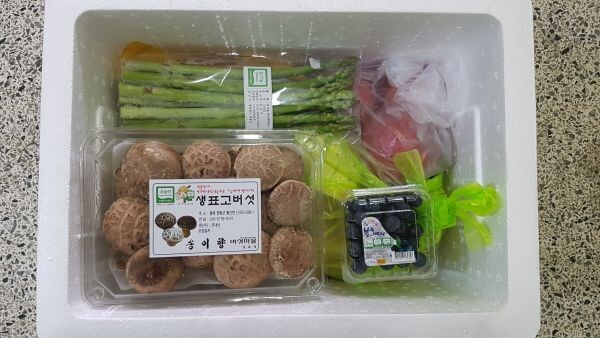 학생 가정에 공급되는 농산물 꾸러미는 쌀, 표고 과일 등 지역내 생산된 농산물로 알차게 구성됐다.