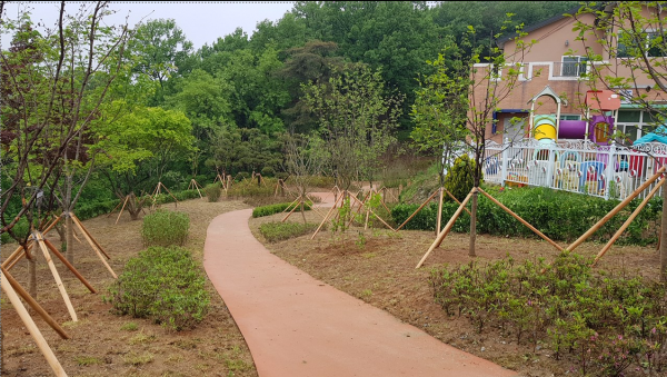 임시주차장으로 사용되던 나대지에 소나무, 화살나무 등 전통수종 위주로 23종의 다양한 수목을 식재했으며 누구나 이용할 수 있는 산책로를 조성해 지역민의 휴식공간으로 톡톡히 자리매김할 것으로 기대되고 있다.