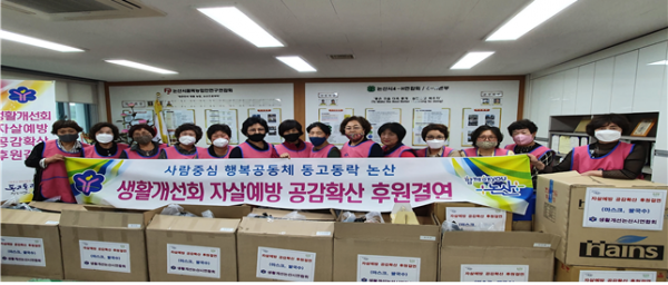 생활개선논산시연합회는 읍·면·동별 3명의 생활개선회원과 홀몸 어르신 간 후원결연을 맺고 지속적인 방문으로 이미용 봉사 및 말벗봉사 등을 실시하며 지역 소외계층에 대한 관심과 자살예방 공감대 확산, 이웃사랑 실천을 위해 앞장서고 있다.