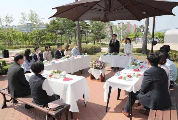 양승조 지사 내외와 도내 거주 중인 부부 등 10여명이 참여한 가운데 연 이번 행사는 생활 속 거리두기를 준수하기 위해 소규모로 추진했다.
