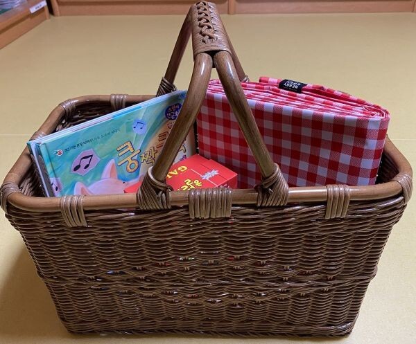 피크닉 세트는 돗자리 1개, 보드게임 1개, 도서 2권을 피크닉 바구니에 담아주며 도서를 제외한 물품들은 당일 오후 5시까지 반납이다.