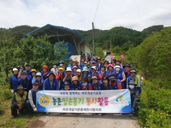 [무한뉴스] 바르게살기운동 제천시협의회에서는 코로나 19로 인력난을 겪고 있는 농가의 어려움을 덜고자 지난 21일 생산적 일손봉사에 참여했다.