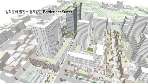 당선작은 ‘창작문화 발전소’와 ‘경계없는 거리’을 기본개념으로 제시했다.