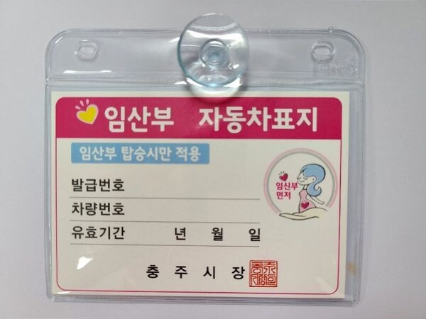 임산부 자동차 표지는 충주시에 주민등록이 된 임산부가 임신부 신분증, 임신확인서 또는 산모수첩, 차량등록증, 주민등록등본을 지참해 충주시 보건소 1층 모자보건실을 방문해 신청하면 발급 받을 수 있다.