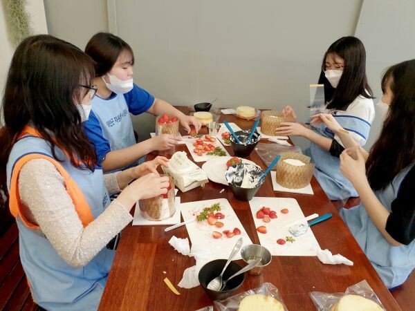 군에 따르면, ‘부부의 날’이었던 지난 21일 학생 봉사자 10여명이 태안읍 ‘팜스쿠키’에서 케이크를 손수 만들고 캘리그라피 응원액자와 꽃다발을 준비해 관내 장수부부 8쌍과 위기부부 10쌍에게 전달했다.