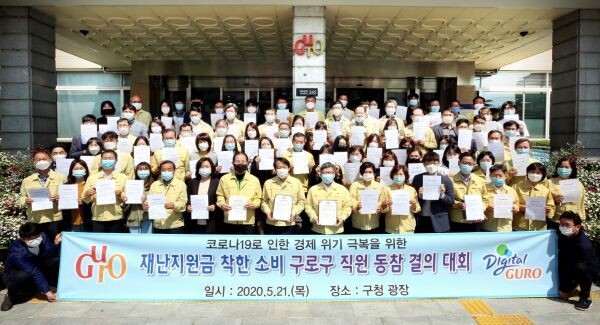 [무한뉴스] “구로에서 더 빨리, 더 많이 소비한다” 구로구청 직원들이 소비 촉진을 통한 지역경제 활성화를 위해 ‘긴급재난지원금 착한소비 운동’에 뜻을 모았다.
