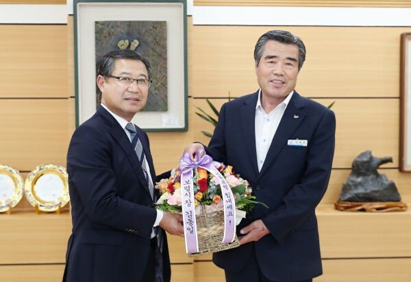이날 김동일 시장은 보령교육지원청을 방문해 서정문 교육장에게 꽃바구니를 전달했다.
