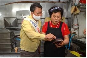 장사하느라 5부제 날짜를 놓쳐버렸다, 자녀들에게 물어보고 신청하려 했다, 직접 방문해 접수하려고 기다리고 있었다 등 각자 다른 이유로 온라인 접수를 하지 못했던 상인들은 구의 뜻밖의 현장 지원에 반색하며 온라인 신청을 끝낼 수 있었다.