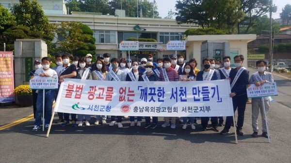 참가자들은 서천군청에서 출발해 서천특화시장을 거쳐 서천축협으로 이동하면서 피켓과 어깨띠로 홍보함과 동시에 신호등, 전주, 가로등과 건물 벽면에 부착된 전단, 벽보, 스티커 등 불법광고물을 수거했다.