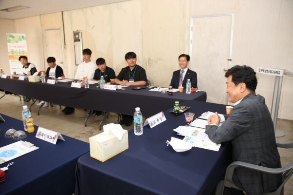 [무한뉴스] 김병우 충청북도교육감이 3일 충북생명산업고 학교 농장에서 졸업생 창업 인큐베이팅사업에 선정된 졸업생 5명과 청년 창업농 지원방안 등을 논의하기 위해 간담회를 가졌다.