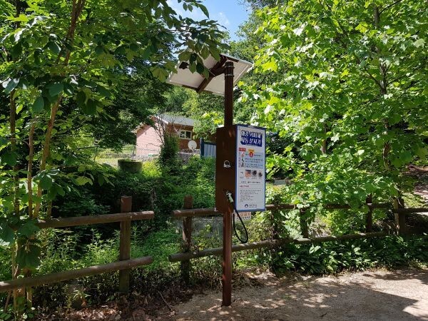 이번에 설치한 기피제 자동분사기는 분사기 손잡이를 당겨 팔과 다리, 착용한 옷위에 뿌리는 방식으로 누구나 손쉽게 사용할 수 있다.