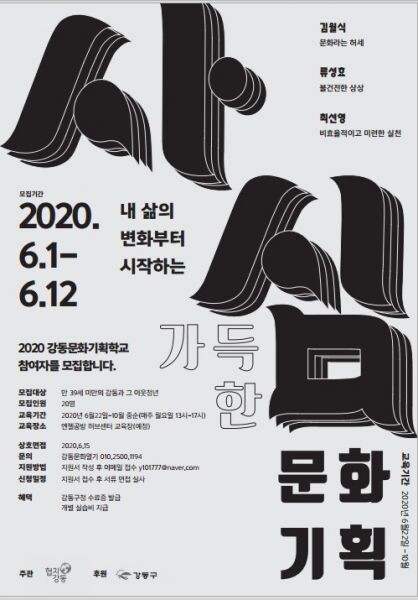 지역 문화의 주축인 주민을 생활문화 기획자로 양성하고 강동구만의 생활문화 브랜드를 창출해 구민의 일상 속에 문화예술을 꽃피우려는 취지다.