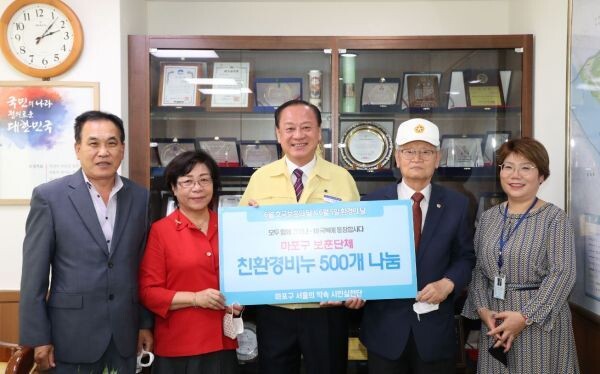 [무한뉴스] 마포구가 지난 5일 환경의 날을 맞아 비영리민간단체인 마포구 서울의약속시민실천단이 코로나19 예방을 위해 제작한 친환경 비누를 마포구 보훈단체에게 기증하는 나눔 행사를 개최했다.