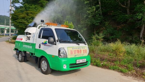 이번 방제는 해당 읍면의 신청을 받아 진행되며 8일 현재 15개소가 신청을 완료한 가운데 방제는 농업기술센터 동부농업지원팀이 동부지역 플랫폼 구축사업을 통해 구입한 다목적 방제차량을 활용해 실시한다.