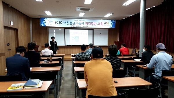 군은 지난 2017년부터 2019년까지 교육을 실시해 지금까지 버섯종균기능사 44명을 배출했으며 올해에도 12명의 정예 교육생을 모집해 지난달 27일부터 필기분야 첫 교육을 실시했다.