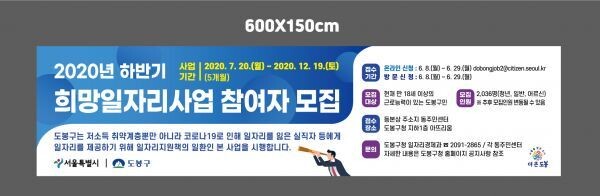 구는 기존에 시행되던 공공근로사업을 대폭 확장해, 코로나19 사태로 실직·폐업 등으로 일자리를 잃은 도봉구민을 위해 희망일자리사업을 시행한다.