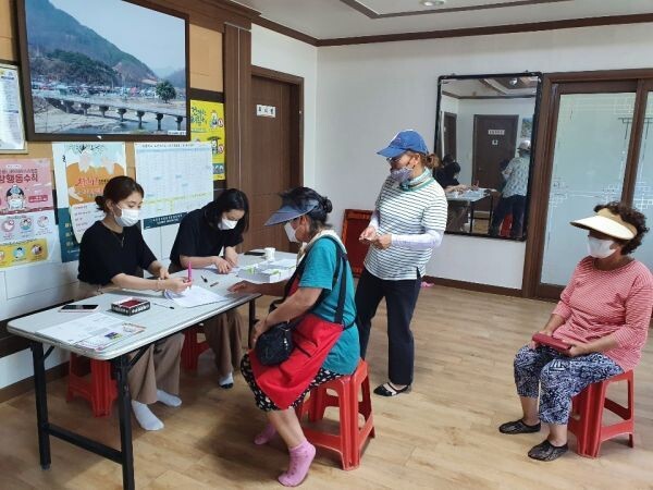 군북면 국원리 박창진 이장은 “우리 마을의 경우 군북면사무소로 향수OK카드를 받으려 가려면 버스를 두 번 타고 가야하는데 마을담당직원이 이렇게 마을회관까지 와서 배부해줘 고맙다.