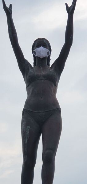 시는 이날 대천해수욕장 머드광장에 설치된 인어상과 여인의 상에 마스크를 씌웠고 방문한 관광객들에게는 생활 속 거리두기 및 마스크 착용 등 방역수칙을 준수할 것을 홍보했다.