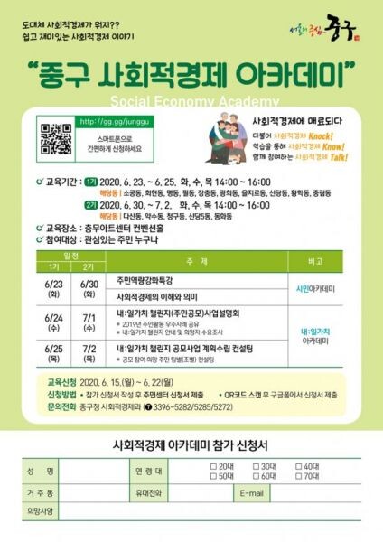 [무한뉴스] 중구가 오는 23일부터 충무아트센터 컨벤션홀에서 2020년 사회적경제 아카데미를 개최한다.