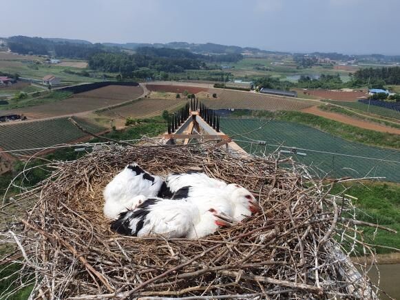 지난 2015년과 2019년에 각각 방새한 대황과 화평 황새 한 쌍은 태안군 남면에 위치한 송전탑에 둥지를 틀고 지난 5월 3일 첫 부화를 시작으로 총 4마리의 새끼 황새를 부화시켰다.