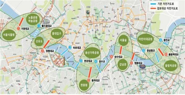 이렇게 되면 기존에 단절됐던 자전거도로가 촘촘히 연결돼 도심과 한강을 중심으로 서울을 남-북과 동-서로 연결하는 자전거 간선망이 완성된다.