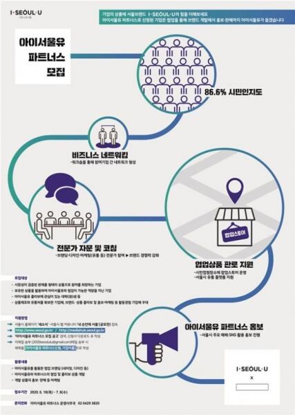 [무한뉴스] 서울시는 서울브랜드 아이서울유와 공동 브랜딩할‘2020 아이서울유 파트너스’사업을 오는 18일 부터 7월 8일까지 모집한다고 밝혔다.