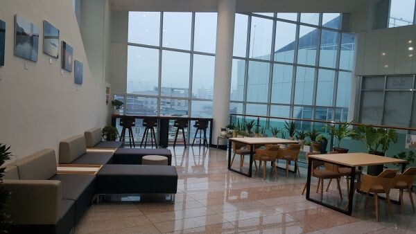 각 층 로비 창가에는 원목으로 된 따뜻한 분위기의 테이블을 비치해 자연 채광을 즐기며 여유롭게 독서와 휴식 등을 할 수 있는 공간으로 꾸며졌고 3층 로비 벽면은 누구든지 편하게 앉아 좋아하는 잡지를 읽을 수 있는 소파와 잡지꽂이를 비치해 특별한 휴식 공간으로 변신했다.