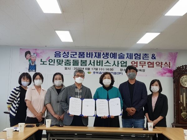 [무한뉴스] 지난 17일 충북음성지역자활센터와 음성품바재생예술체험촌은 지난 17일 지역의 사회취약계층과 노인 맞춤 돌봄 서비스 대상자의 건강한 문화생활을 지원하기 위한 업무협약을 체결했다.