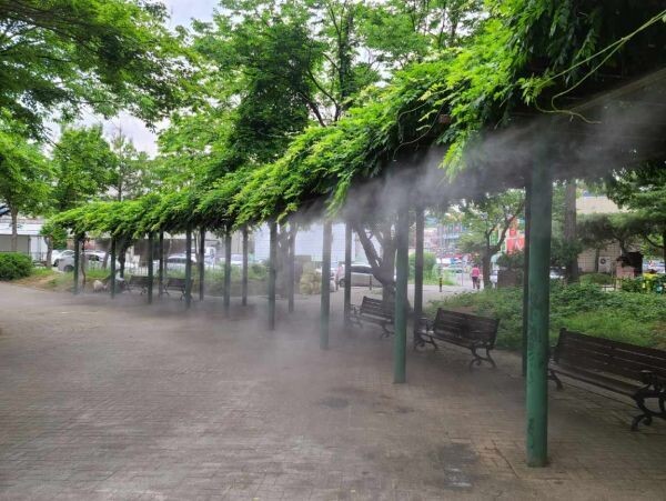 시는 많은 시민이 이용하는 공원 내 등나무 밑 벤치 및 어린이 놀이터 두 곳에 쿨링포그를 설치해 폭염에 잠시 더위를 피할 수 있는 휴식공간을 마련했다.