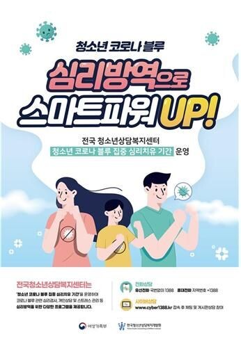 [무한뉴스] 부여군시설관리공단 청소년상담복지센터는 코로나19의 장기화 및 재확산 사태로 코로나 블루를 겪는 청소년들의 심리건강을 증진시키고 일상으로의 복귀를 돕고자 7월 31일까지‘청소년 코로나 블루 집중 심리치유 기간’을 운영한다.