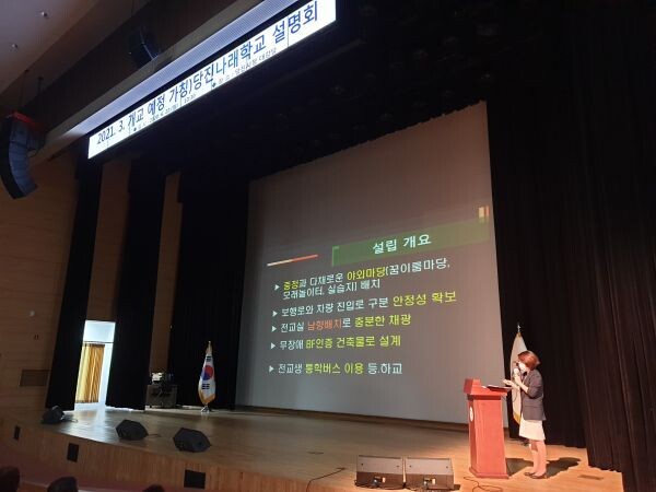 [무한뉴스] 충남교육청은 2021년 개교 예정인 가칭)당진나래학교 개교 준비를 위해 특수학교 학부모 120여명과 특수교사 50여명을 대상으로 19일과 22일 양 일에 걸쳐 설명회를 개최했다.