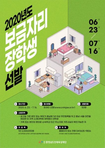 충남출신 대학생 월세액 지원을 위한 ‘보금자리 장학생’ 모집