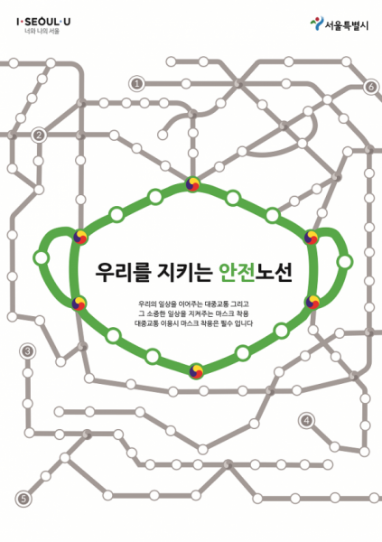 이미지부문 금상은 지하철노선을 마스크로 비유해 마스크 쓰기를 강조한 ‘우리를 지키는 안전노선’이, 은상은 몸은 멀어도 서로를 생각하는 마음은 가깝다는 ‘서로가 웃을 수 있는 거리, 2M’와 국민을 위해 헌신하는 의료진이 영웅이라는 ‘우리의 영웅’이 선정됐다.