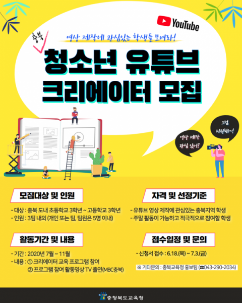 충북교육청, 유튜브 영상 제작에 관심 있는 청소년 유튜버를 모집합니다.