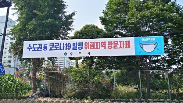 시는 수도권과 대전 지역에서 다단계 판매 및 요양 시설 등을 통해 지속적으로 코로나19 확진자가 발생하고 있어 발생지역에 대한 방문 자제 요청 및 친인척의 충북 방문 자제를 요청하는 홍보 현수막을 200여 개를 게첨하는 등 대대적인 홍보 활동을 펼치고 있다.
