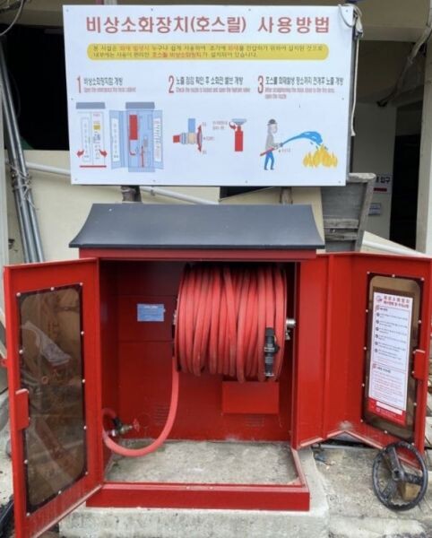 호스릴소화전은 최대 100m의 길이의 소방 호스가 소화전함 안에 구비돼 있어 화재 발생 시 소방차가 도착하기 전까지 신속하게 초기화재를 진압을 할 수 있는 장비다.
