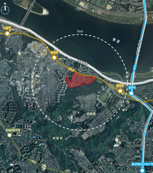 북측으로 현충로 남측으로 현충원, 서달산을 접하고 9호선 동작역, 흑석역이 인접해 대중교통 이용이 편리하고 비개마을이라는 역사적 특성을 지닌 한강변 기슭에 위치해, 기존 주거지의 조직체계를 반영한 마을을 유지하기 위해 블력형 마을과 길과 마당을 가진 특색있는 주거지를 계획했으며 현충원에서 대상지가 보이지 않도록 높이를 관리하는 것과 동시에, 서달산 지형에 순응하는 도시경관과 통경축을 확보하고 5~8층 저층형, 14~16층 중층 탑상형 배치, 옥상부에 계단식 테라스 도입 등 다양한 주거동 및 평면계획으로 성냥갑 아파트 계획을 탈피한 새로운 형태의 공동주택으로 계획됐다.