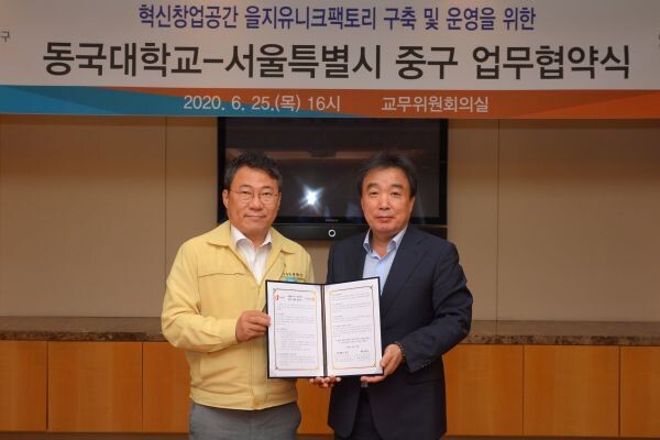 이에 구는 25일 오후 4시 동국대학교와 혁신창업공간 을지유니크팩토리 업무 제휴 협약을 체결했다.