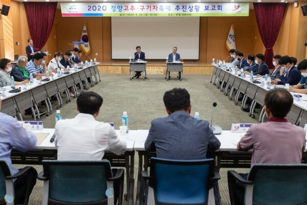 29일 군에 따르면, 2020청양고추구기자축제추진위원회는 지난 26일 군청 대회의실에서 추진상황보고회를 열고 코로나19 확산사태와 관련 야외 대규모행사를 전면 취소하고 청양고추, 청양구기자 등 우수 농특산물을 대상으로 온라인 특별판매전을 개최하기로 결정했다.