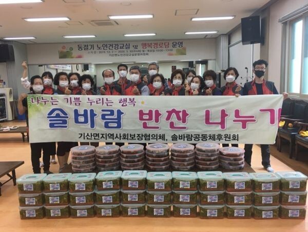 봉사단원들과 공동체 회원들, 그리고 기산면 직원들은 직접 취약계층의 가정을 방문해 안부를 확인하고 생활에 어려운 점은 없는지 살피며 반찬을 전달했다.