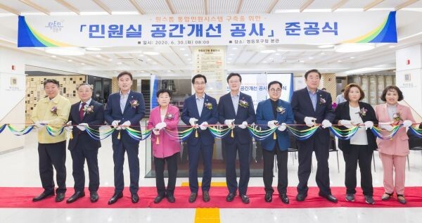 구는 지난 30일 ‘원스톱 통합민원실 준공식’을 개최하고 채현일 구청장과 직원들은 새로 탈바꿈한 통합민원실을 함께 라운딩하며 축하했다.