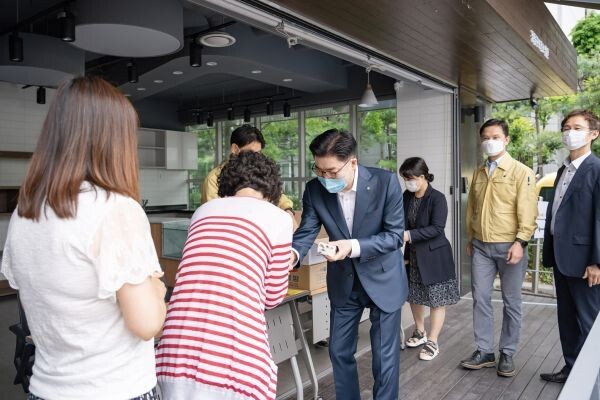 이후 곧바로 선별진료소와 치매지원센터를 찾아 수고하는 의료진과 간호사 등 현장직원들과 티타임을 겸한 간담회를 가졌다.