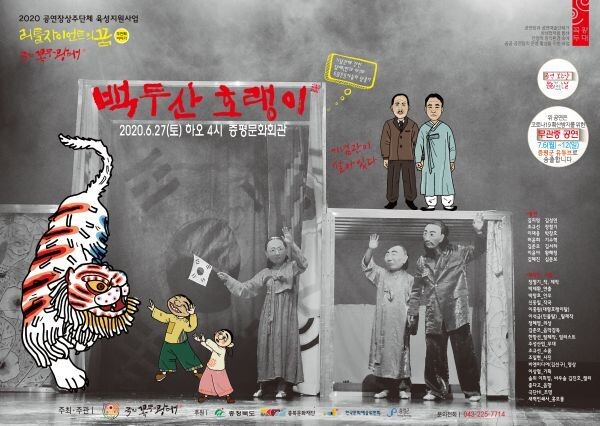 [무한뉴스] 증평군은 금년도 문화회관 공연장상주단체인 극단꼭두광대의 ‘백두산 호랭이’ 작품을 무관중 온라인공연으로 송출한다.